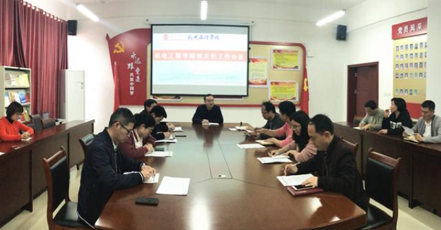 为加强学风建设和班级管理, 3月20日,机电工程学院在理科楼E座党员活动室召开班主任工作会议。该院党委书记书记、院长徐顺建,党委副书记刘和生,学生科和团委负责人,全体辅导员及各班班主任参加会议。 ...