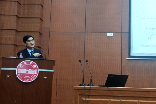 4月28日上午,第73期“天工论坛”学术讲座在行政楼一楼报告厅举行。常州大学朱卫国教授应邀作为本次讲座的主讲嘉宾,科研处处长黎爱斌主持讲座,新能源科学与工程学院师生100多人参加。朱教授以“聚合物光伏材料与太阳能电池”...