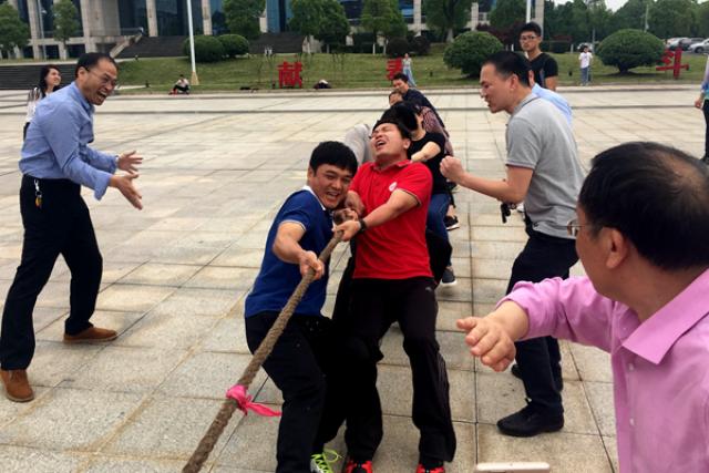为迎接第""五一”国际劳动节,营造我校教职工同心协力,团结拼搏的良好精神风貌,丰富教职工业余文化生活,增强教职工的身体素质,校工会于 4月26日下午在梦想广场举办了迎“五一”拔河比赛。此次比赛有17个分工会参加,...