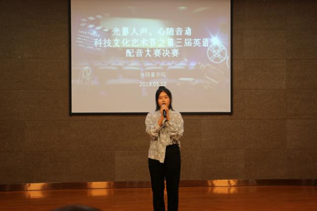 为进一步提高同学们学习外语的积极性,彰显语言文化的魅力,5月10日下午,外国语学院在艺术学院演播厅举办科技文化艺术节之“光影人声,心随音动”第三届英语配音大赛决赛。本次比赛共有11组参赛队进入决赛,配音题材涉及科幻、...