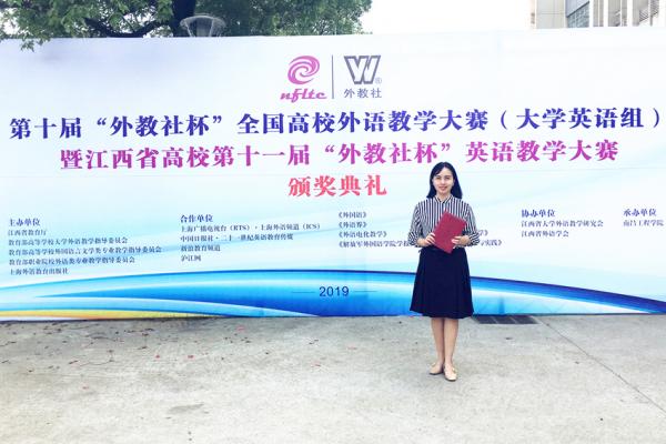 由江西省教育厅主办的第十一届“外教社杯”全国高校外语教学大赛江西省赛区决赛于5月31日至6月2日在南昌工程学院举行。本次大赛吸引了来自全省39所本科高校的众多英语教学骨干教师参与,经过两天的激烈角逐,我校外国语学院柳敏老师获本科综合组二等奖。...