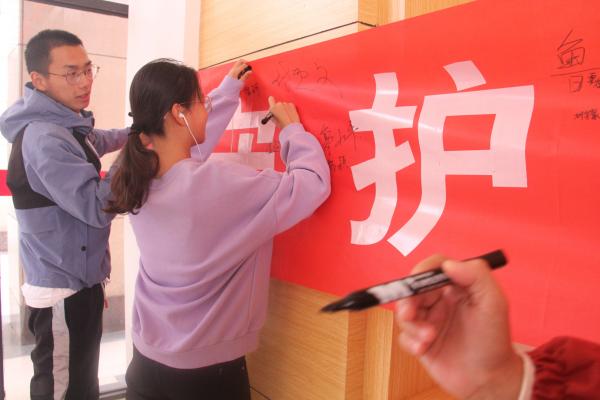 为进一步推进“打造忠诚高校,创建文明校园”活动,引导和推动师生不断增强“四个意识”、坚定“四个自信”,11月11日上午,经济管理学院在文A大厅开展“守护课堂 守护网络”大型签名活动。该院师生积极参与,在横幅上写下自己的名字,...