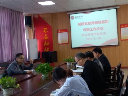 根据学校“不忘初心 牢记使命”主题教育的工作要求, 11月4日上午,经济管理学院在党员活动室开展了对照党章党规找差距的专题工作会议,该院党委班子成员参加。会上,经济管理学院党委书记、院长周小云带头逐一对照党章党规,...