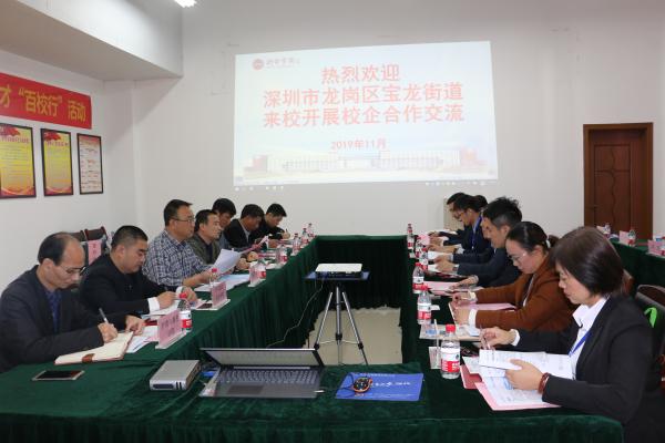 11月15日下午,深圳市龙岗区宝龙街道领导及企业代表一行来我校举行“送岗位进校园”就业洽谈会,学生就业与事务处及部分二级学院分管就业领导参加会议。校方代表简要介绍了我校基本情况及2020届毕业生信息,希望双方在就业招聘和校企合作等方面深度合作。...