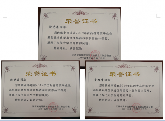 近日,在2019年江西省开展的第四期高校毕业生基层就业典型事迹评选活动中,我校报送的基层就业典型获得一等奖一个,三等奖两个。 在全省高校一百余个参评事迹中,我校体育学院推荐的《援疆支教•共筑中国梦》...