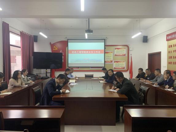 10月26日下午,机电工程学院在党员活动室召开班主任工作会,该院党委书记书记、院长徐顺建,党委副书记方建新,学生科、团委相关负责人及全体班主任共同参加本次会议。会议讨论了近期学生管理方面的一些问题,并提出应对思路,...