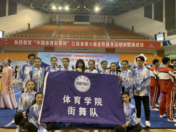 11月6日-9日,由江西省人民政府主办,江西省体育局、江西省体育总会承办的“中国体育彩票杯”第六届全民健身运动会啦啦操比赛在江西省体育馆举行,共有11个设区市代表队,近300名运动员参赛。我校体育学院街舞队收获啦啦操自选动作组(...