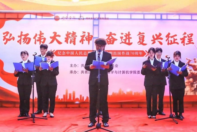 今年是中国人民志愿军抗美援朝出国作战70周年,为缅怀革命先烈,弘扬伟大抗美援朝精神,12月1日下午,数学与计算机学院开展以“弘扬伟大精神,奋进复兴征程”为主题的周末文化广场活动。校团委书记肖娟,数学与计算机学院负责人刘志龙,...