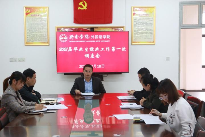 3月18日下午,外国语学院在该院党员活动室召开2021届毕业生就业工作第一次调度会。外国语学院党委书记、院长刘华东,该院党委副书记胡小刚及相关教师和各毕业班班主任出席会议。刘华东指出了接下来的就业工作方向,并给各班班主任提出指导性意见,...