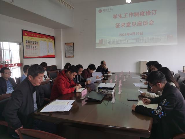 为进一步加强我校学生工作的规范化、系统化和制度化建设,近期,学生处召开学生工作制度修订征求意见座谈会,会议由学生处处长刘柏松主持,学生处相关科室负责人、各学院学生管理科科长及部分班主任代表参加了会议。会上,...