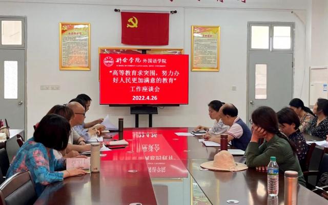 4月26日下午,外国语学院召开“高等教育求突围,努力办好人民更加满意的教育”工作座谈会。会议由外国语学院党委书记、院长刘华东主持,外国语学院全体教职工参加了座谈会。会上,刘华东传达了学校《关于深入学习习近平总书记关于教育的重要论述和考察江西重要讲话精神以及深入学习宣传贯彻易炼红同志在省委教育工作领导小组2022年第一次全体会议上的重要讲话精神》...