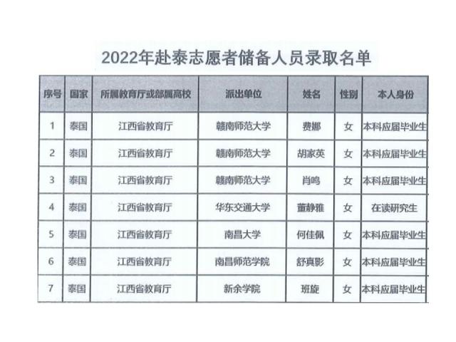 (文/国际合作与交流处 何卫平)近日,中外语言交流合作中心公布《关于录取2022年赴泰志愿者储备的函》,我校2018级汉语言文学专业班旋同学被录取为国际中文教育志愿者储备人员,成为我校继2010级英语专业刘银玲同学之后,...