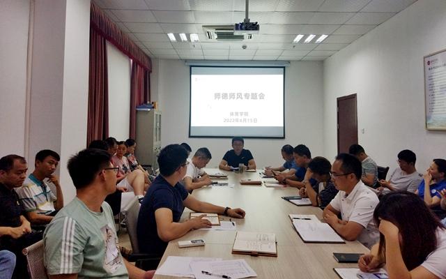 (文/图体育学院熊璐)6月15日,体育学院召开师德师风专题会议。会上,该院党委书记、院长傅超组织全体教师共同学习了近日江西省教育厅发布的《江西省教育厅公布第三批6起教师违反师德师风典型案例》。傅超强调,广大教师要汲取反面典型的深刻教训,...