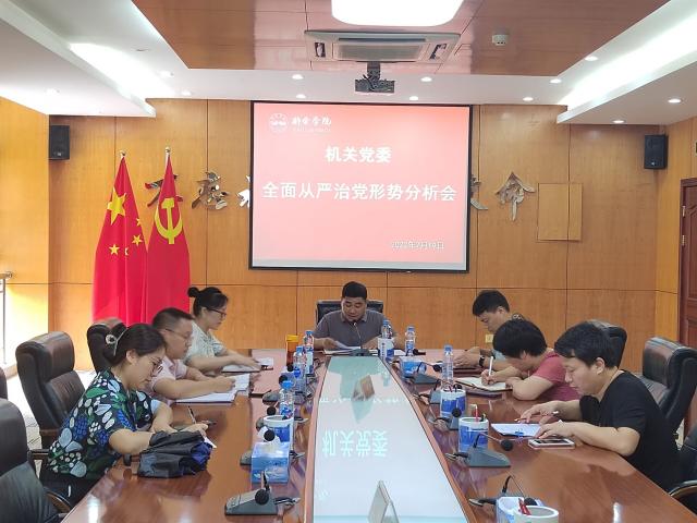 (文/图 机关党委 田丽)7月19日下午,机关党委召开全面从严治党形势分析会,会议由机关党委书记钟钺主持,机关党委委员参加会议,机关五支部支委委员等列席会议。会上,钟钺代表机关党委作了全面从严治党形势分析。...