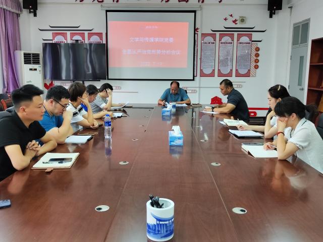 (文/图 文学院 余清)7月19日上午,文学与传媒学院召开全面从严治党形势分析会议。学院班子成员参会、各科室负责人列席会议,会议由学院负责人田建鑫主持。学院负责人田建鑫作了全面从严治党形势分析报告。...