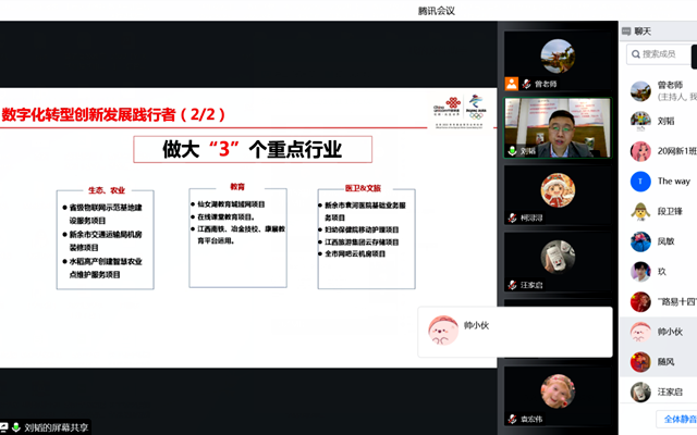 (文图/数学与计算机学院 曾海明)为进一步推进数学与计算机学院2023届毕业生就业工作,10月11日晚,数计学院举办了中国联通新余分公司校园专场招聘线上宣讲会,会议由学生科负责人曾海明主持,2023届毕业生及毕业班班主任参加了本次宣讲会。...