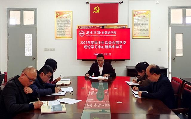 (图/外国语学院 黄仁静 文/外国语学院 黄赤强)2月19至21日,在2022年度民主生活会召开之前,外国语学院召开党委理论学习中心组集中学习暨2022年度民主生活会会前专题学习会议。会议由该院党委书记、院长刘华东主持,...