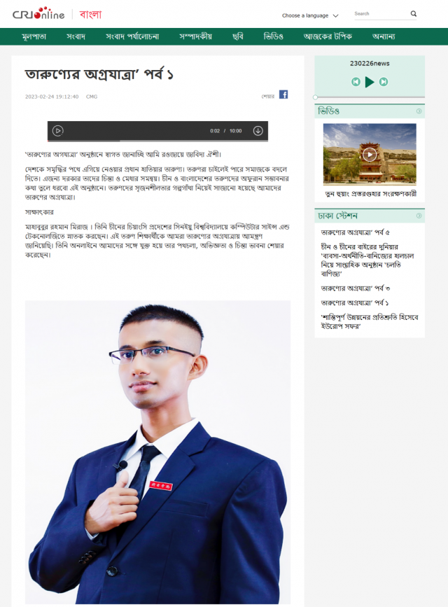 近日,我校孟加拉国籍留学生何善参加了中国国际广播电台(CRI)的电话连线采访活动。何善在采访中介绍了他为什么选择来中国留学,在中国所学习到的先进技术以及如何将这些技术带到孟加拉国,何善还介绍了在新余学院的学习与生活,...