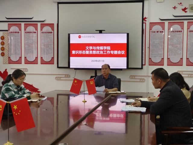 4月11日下午,文学与传媒学院召开意识形态暨思想政治工作专题会议,该院全体教师参会,院党委书记、院长田建鑫主持会议。田建鑫指出强调,2023年是贯彻党的二十大精神的开局之年,是全面建设社会主义现代化开局起步的重要一年,...