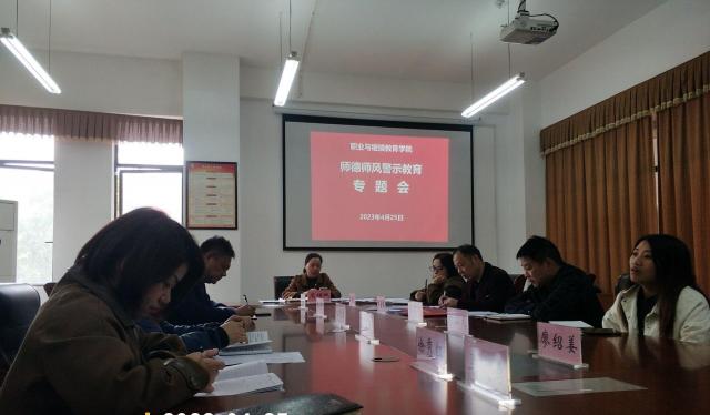 4月25日下午,职业与继续教育学院召开了师德师风警示教育专题会,全体教师参加会议。会上,学院负责人周辉艳同志带领教师们共同学习教育部公开曝光的第十二批7起违反教师职业行为十项准则典型案例,逐条为教师详解违反教师职业行为典型案例的各项内容,...
