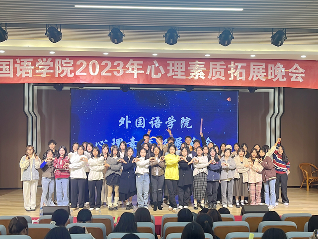 为进一步传播心理健康理念,多举措促进学生心理健康,丰富校园文化生活,11月20日,外国语学院“青春,敢闯才辉煌”心理素质拓展晚会在文传学院演播厅举办。晚会中,同学们激情四溢,表演者们个个意气风发,活动进行得如火如荼,...