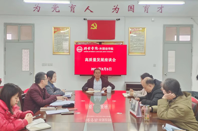 为凝聚学院发展力量,3月5日下午,外国语学院召开高质量发展座谈会。会议围绕“学科建设、专业建设、课程建设、学科竞赛、教学质量提升、教师教学科研能力提升”等主题开展深入研讨。学院领导班子、教研室主任、高级职称教师、...