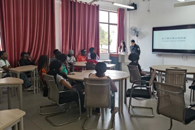 3月25日下午,对外合作交流中心组织开展留学生“出入境法律法规”讲座,邀请新余市公安局出入境管理处警官廖建亮、市公安局高新分局专业干警黄晨作为主讲人。学校全体留学生现场聆听讲座。 两位警官以其专业知识与丰富的实践经验,...