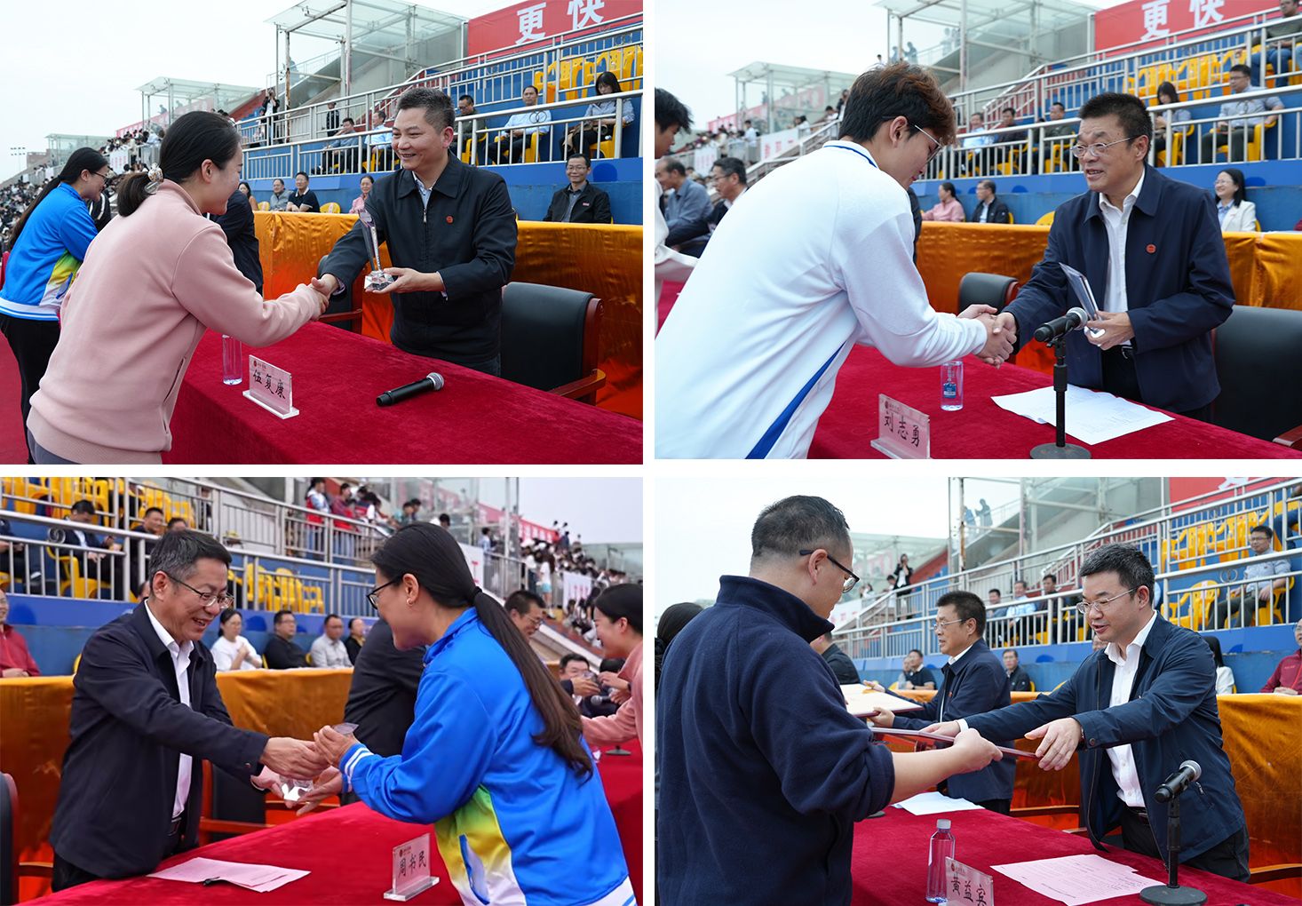 朔风初歇晴空朗,霜月方临冬韵彰。11月7日下午,我校第十六届田径运动会闭幕式在南操场举行。在家的校党政班子成员伍复康、刘志勇、刘力恒、黄益宾、姚伟、钟钺出席闭幕式。各二级学院党委书记、各部门主要负责人,与全体裁判员、运动员,师生代表共计2000余人参加闭幕式。闭幕式由校党委委员、副校长黄益宾主持。