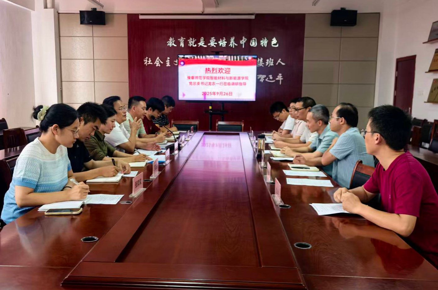 为了进一步深化新能源领域的人才培养与科研合作,拓展学院间交流互鉴渠道,9月26日,豫章师范学院智能材料与新能源学院党总支书记龙农一行来我校新能源科学与工程学院开展新能源领域办学经验交流。新能源学院班子成员,相关科室教师代表参加座谈。
