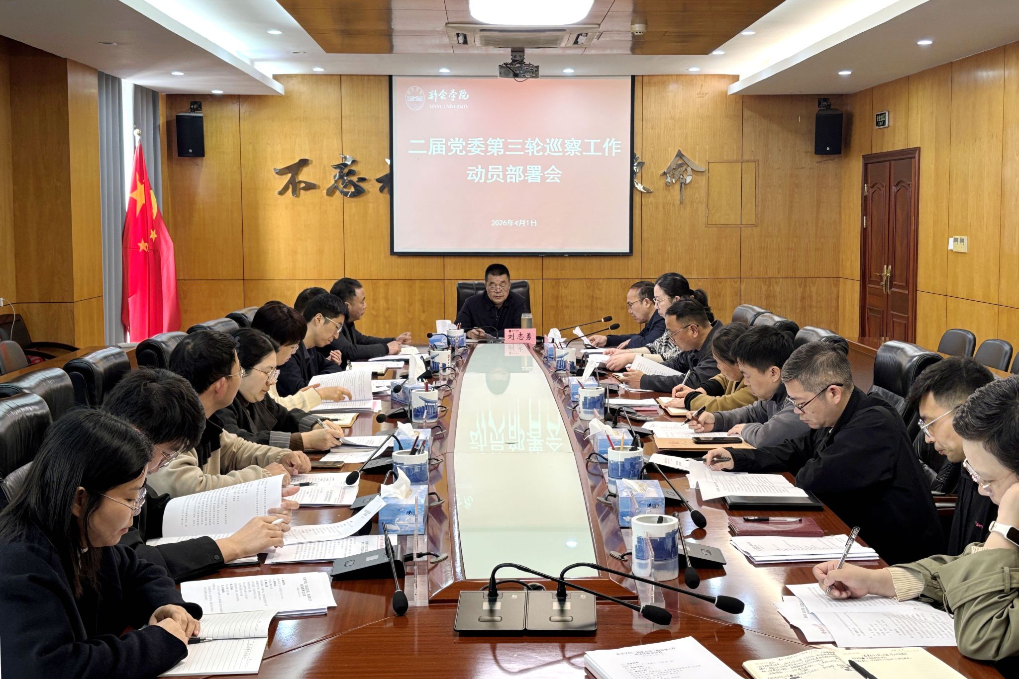 4月1日,学校召开新余学院二届党委第三轮巡察工作动员部署会。校党委委员、纪委书记、省监委驻校监察专员刘志勇出席会议并作动员讲话。副厅级干部张发云,校党委委员、组织部部长周文生出席会议,纪委相关负责人主持会议。