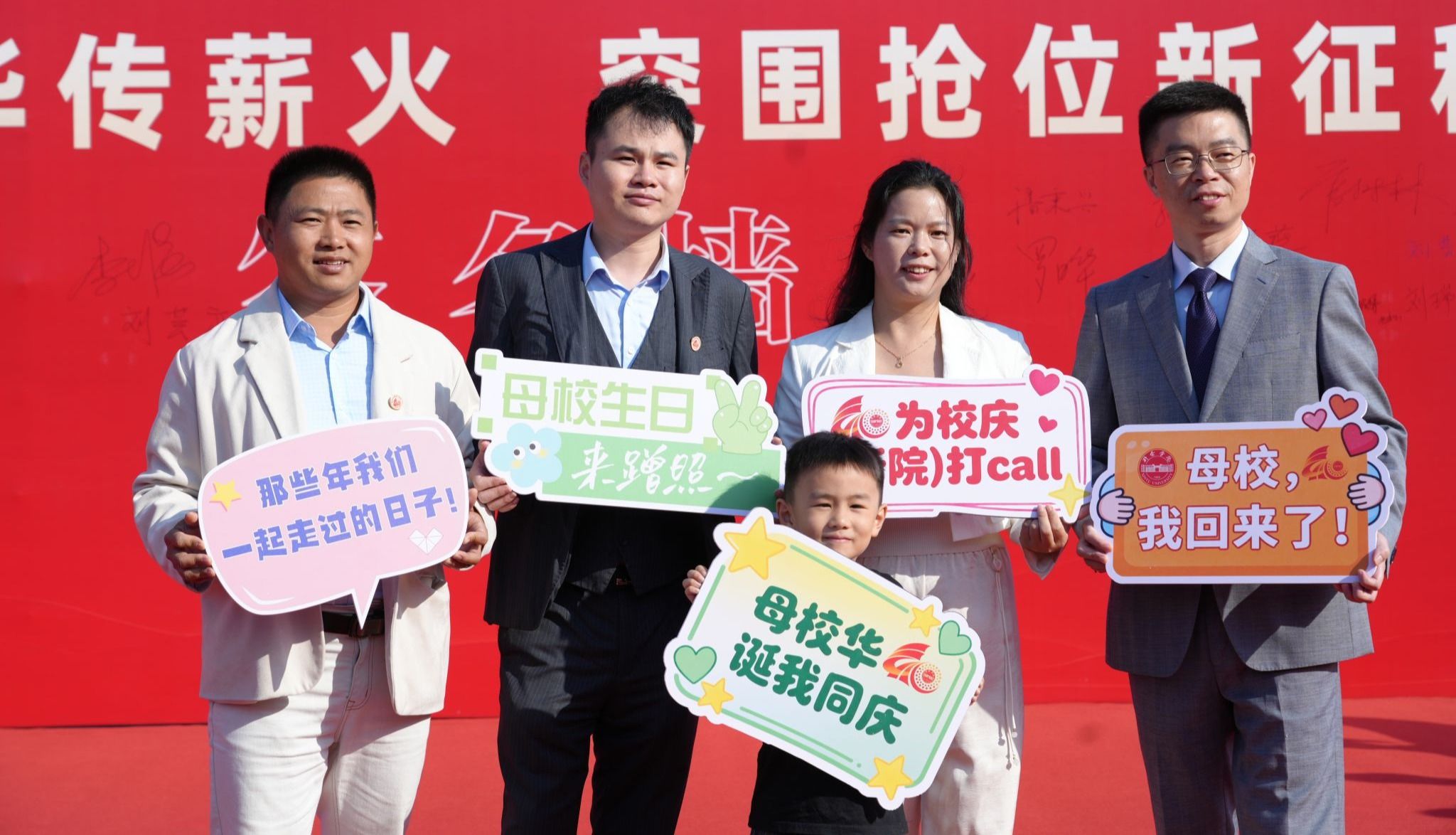 为迎接校友回家,校园内精心设置了签名墙与打卡点,满满的仪式感传递着母校温暖的问候:亲爱的校友,欢迎回家!