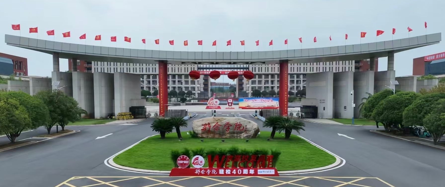 金秋的新余学院,丹桂馥郁,旌旗漫卷,处处涌动着欢庆的热潮。校门前,烫金的楹联与大红灯笼相映成辉;梦想广场四周的阶梯上,校训箴言与鎏金岁月字样错落排布。微风轻拂,绿草如茵,空气中浮动着思念与欢欣。10月25日,新余学院喜迎八方宾朋,建校四十周年庆典盛大开启。