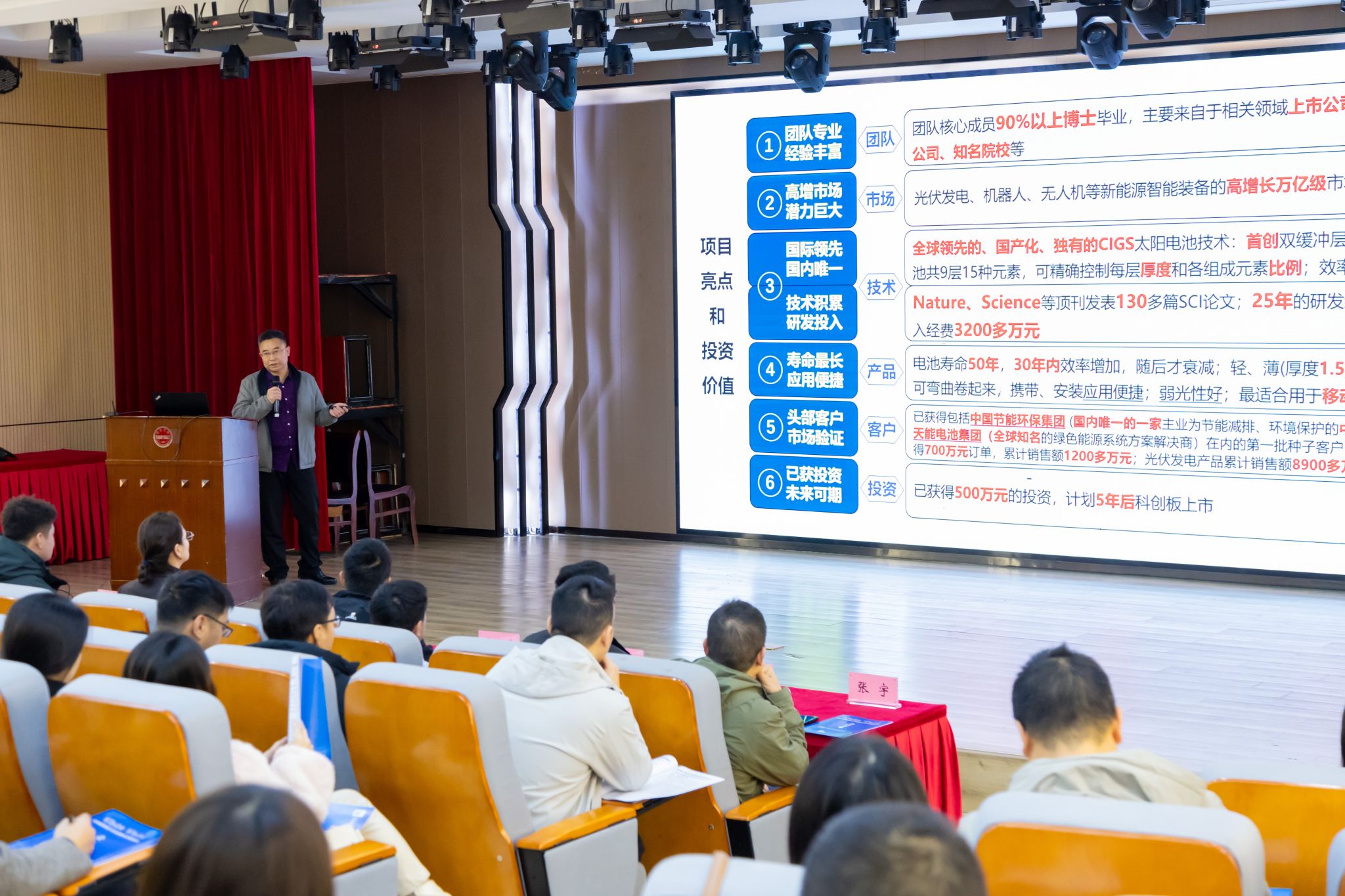 活动特邀国内顶尖科研院所与高校的专家学者担任路演嘉宾。中国科学院北京纳米能源与系统研究所研究员、博士生导师魏良以“储能液流电池的高性能石墨烯电极产业化应用”为题进行成果分享。天津理工大学新能源智能装备研究所董事长薛玉明、中国科学院深圳先进技术研究院刘备、南京弘顺和生物科技有限公司总经理张宇、南昌大学杨猛教授、南昌航空大学朱小宝博士也分别从各自研究领域——“柔性 CIGS 半导体薄膜太阳电池及其智能装备研发及产业化”“低温电池用硅碳材料研发及产业化”“高性能碳化硅陶瓷膜开发及产业化应用”“单壁碳纳米管及其高固含导电浆料产业化”“XRE 高能极速超充电池系统”等进行成果展示。专家们聚焦技术创新点、产业化前景及市场竞争力展开详细阐述,前沿成果引发在场企业广泛关注。