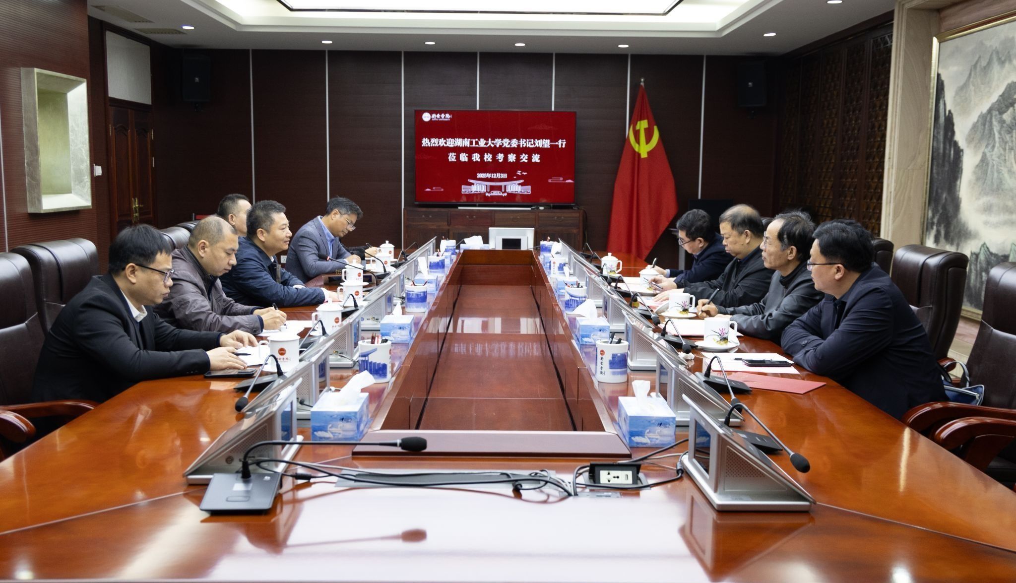 12月3日上午,湖南工业大学党委书记刘望一行来校考察交流。校党委书记伍复康热情接待来宾并主持交流座谈会,校党委委员、副校长刘力恒,相关部门负责人参加座谈。
