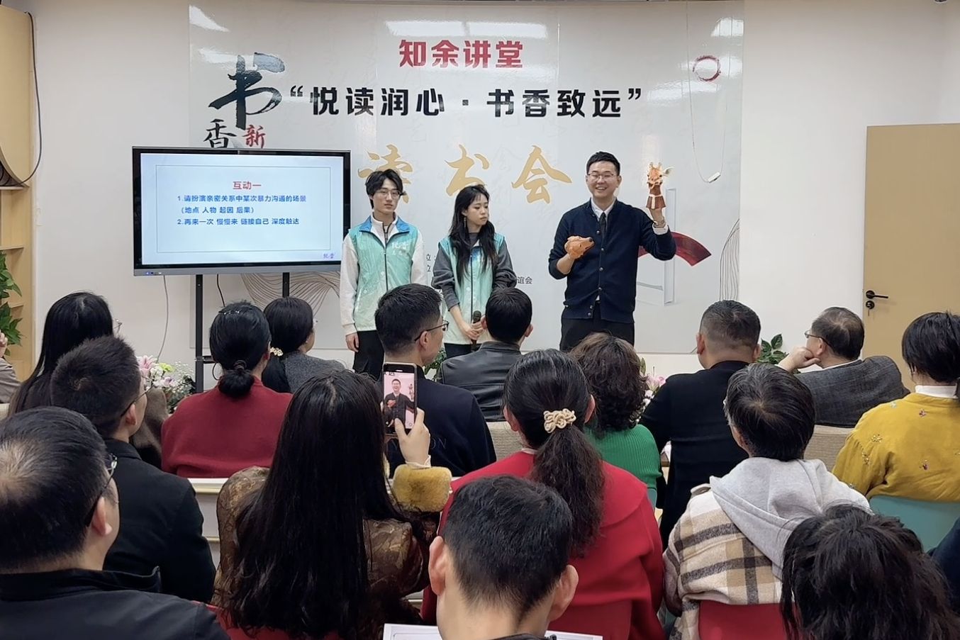 本次读书会以《非暴力沟通》为核心读本,聚焦家庭、亲子、职场沟通痛点,由人文学院播音与主持艺术专业负责人江松博士主讲。他以急救案例切入,辨析暴力与非暴力沟通的本质区别,系统拆解“观察、感受、需要、请求”四大核心步骤,剖析情绪逻辑与亲密关系、亲子沟通中的常见误区,传授实用沟通方法,引导大家以共情化解矛盾、提升沟通效能。活动中,学院“悦音声美”志愿者通过情景剧还原沟通冲突场景,江松博士现场逐句解析误区、示范正确表达方式;交流环节,参与者结合自身经历分享感悟、探讨困惑,在互动中深化对非暴力沟通的理解。