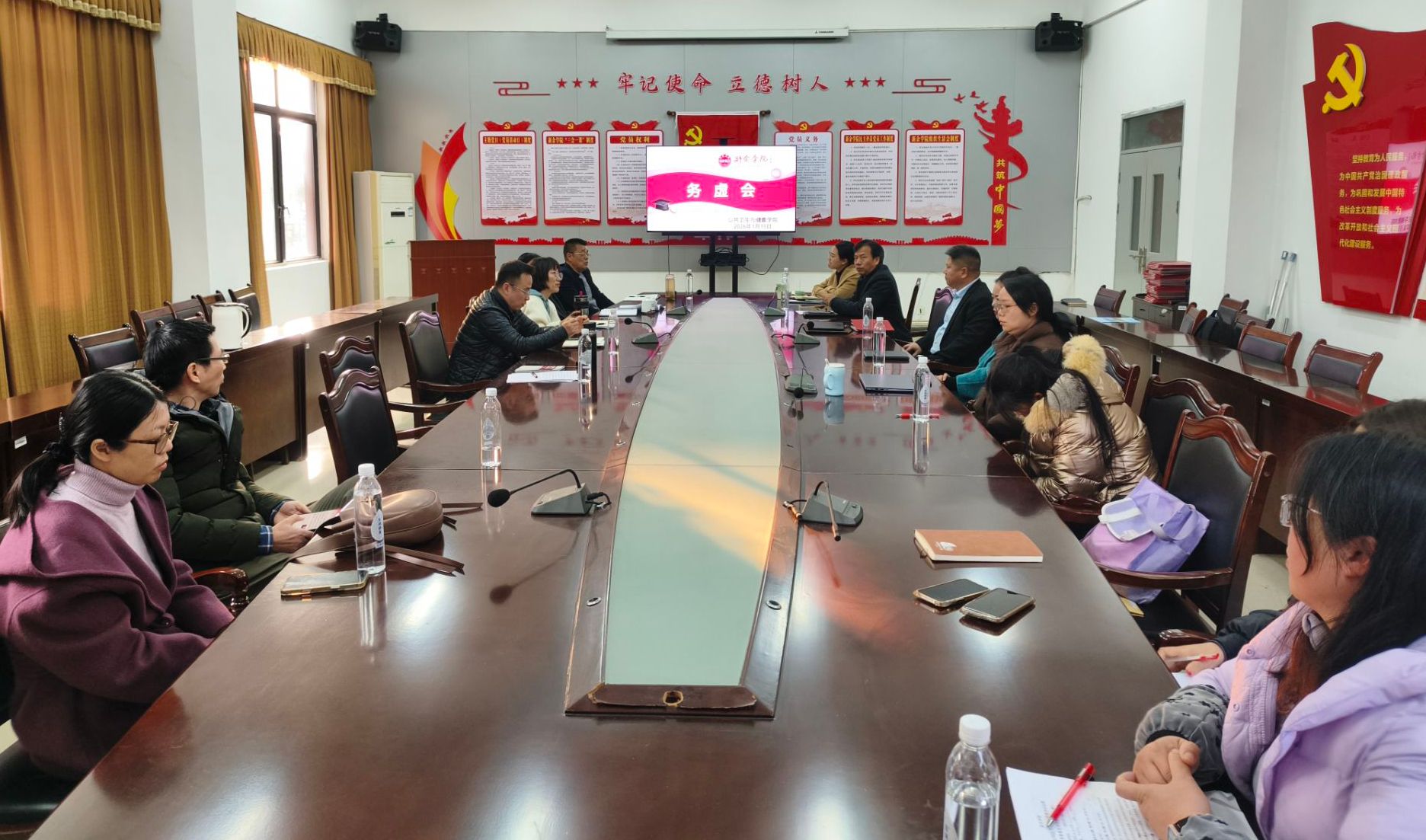 公共卫生与健康学院全体班子成员、各科室负责人、党支部书记、教研室主任及教师代表参加会议。