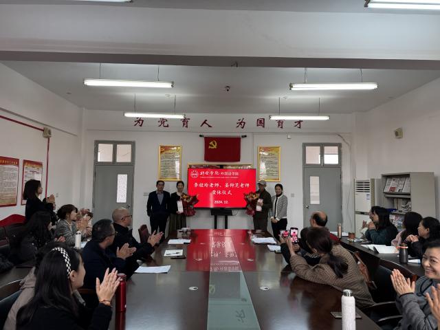 2024年12月3日下午,外国语学院会议室暖意融融,一场温馨而隆重的荣休仪式在此举行,学院全体教职工参加活动。学院党委书记、院长刘华东出席仪式并讲话,仪式由学院党委副书记谢懿主持。