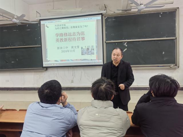 2024年12月10日,新余三中党委副书记黄文芽在文B多媒体教室为学院师生带来了一场主题为“学路修远志为范·英教新程待君攀”的专题讲座。本次讲座旨在帮助英语专业学生明确职业方向,提升职业素养,激发对未来教育事业的热情与信心,共有100余名师生参加。