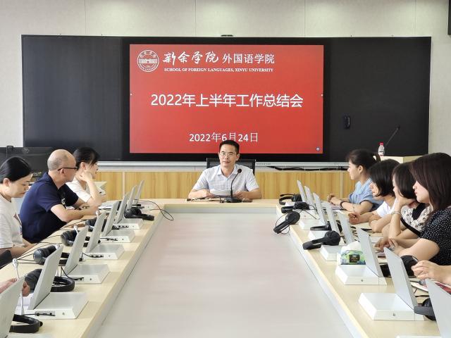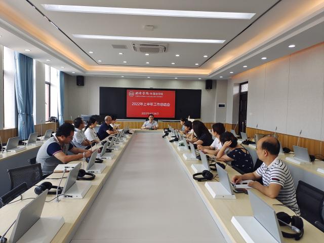 (文/黄仁静 图/黄仁静)6月24日下午,外国语学院2022年上半年工作总结会在文B云网络智能翻译实训室召开,全体行政坐班人员和教研室主任参加会议。会议由学院党委书记、院长刘华东主持。