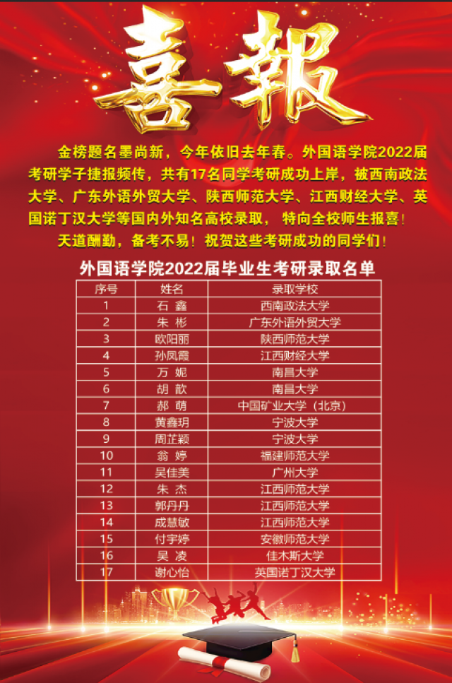 【学外国语•存中国心】喜报:祝贺外国语学院2022届学子成功上岸