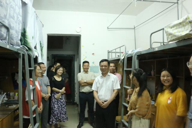 为进一步了解新生入学情况,8月30日晚,校党委委员、副校长李敏与外国语学院主要领导、新生班主任走访了该院新生宿舍。