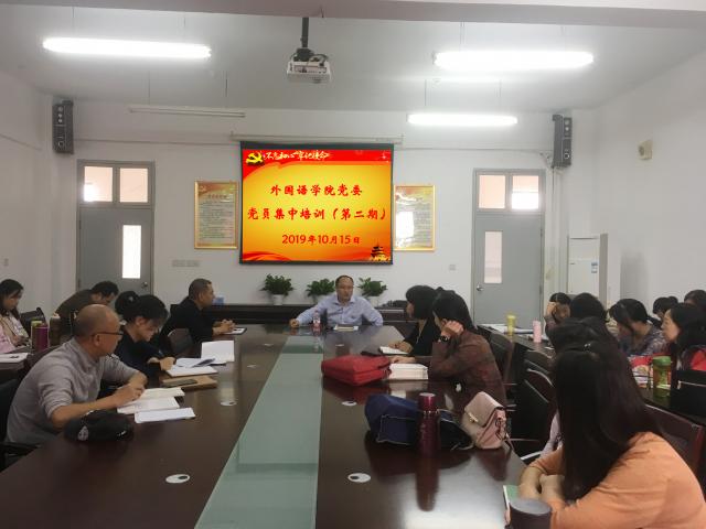 10月15日下午2时,外国语学院党委在院党员活动室开展第二期党员集中培训,学院全体党员参加学习。为增强培训的效果,学院党委邀请了马克思主义学院院长潘欧文博士前来作集中培训辅导。潘博士先后从“不忘初心 方得始终”的源头、党的十九大“不忘初心 牢记使命”的提出,中央为什么要开展“不忘初心 牢记使命”主题教育,党员干部要如何去领会“不忘初心 牢记使命”内涵等角度,旁征博引,深入浅出,用通俗易懂的话语给全体党员上了生动的一课。