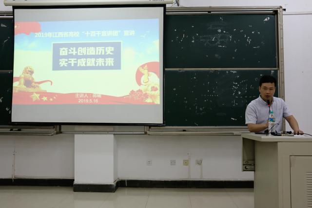 为深入学习贯彻全国“两会”精神特别是习近平总书记在全国“两会”期间的重要讲话精神,我校“十百千宣讲团”成员---马克思主义学院蒋曦博士2019516日晚6点半在文c多媒体为我院师生进行了一场题为“奋斗创造历史,实干成就未来”的理论宣讲。