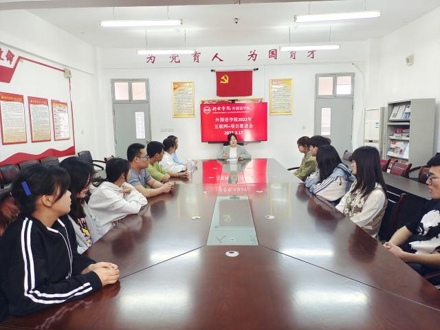 3月17日,外国语学院在学院会议室召开互联网+项目推进会,副院长张莉出席会议并讲话,学院全体班主任及各班班长参加会议。