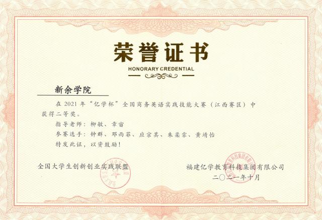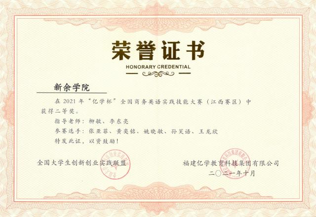 近期,由中国国际贸易学会国际商务英语研究委员会主办,厦门亿学软件有限公司协办的2021年“亿学杯”全国商务英语实践技能大赛落下帷幕。在柳敏、章宙老师悉心指导下,由我院钟群、邓雨菲、应宗其、朱柔霏、黄靖怡同学组成的一队与由张亚菲、黄奕铭、姚晓敏、孙笑语、王龙欣同学组成的二队凭借流利的口语、专业的知识和自信的台风,精诚合作,团队成绩名列第3、4 位,均获二等奖。