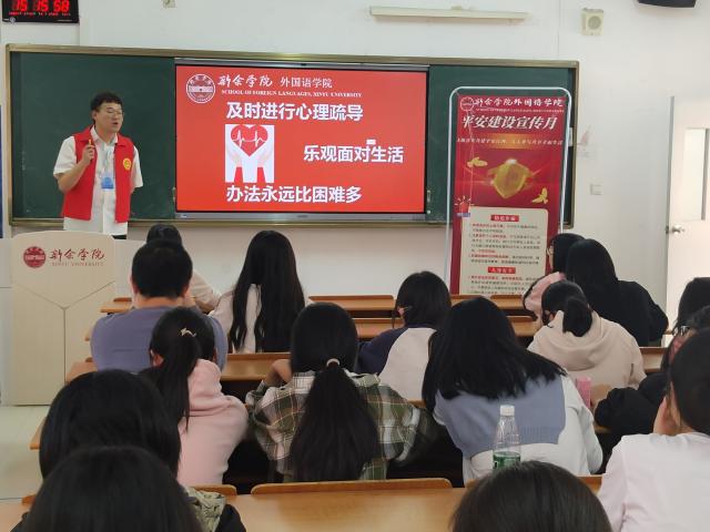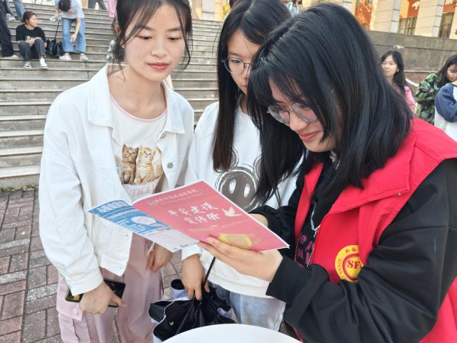​平安建设主题宣讲活动。活动过程中,宣讲员围绕青少年违法犯罪、抵制邪教渗透、大学生心理安全、电信安全等主题展开集中宣讲,同时还发放了相关的平安建设宣传册,让同学们可以更深入地学习和理解这些安全知识,增强安全观念,筑牢防范意识。此外,学院搭起了宣传展板进行现场宣传,向路过的同学分发平安宣传册,普及安全知识,吸引了大量学生驻足观看。整个活动过程井然有序,大家参与热情高涨,取得了良好的效果。