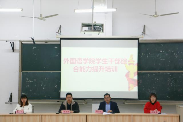为了深入扎实做好外国语学院学生干部的培养工作,切实提高学生干部的理论水平和工作能力,外国语学院于3月23日晚上7点在文C多媒体开展学生干部综合能力提升培训会。