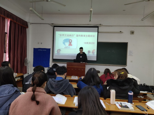 为加强对我院学生预防艾滋病安全教育,增强大学生的健康安全防范识能力,做到防患未然,外国语学院于2019年11月25日至29日期间组织在校班级开展了“世界艾滋病日”教育主题班会。