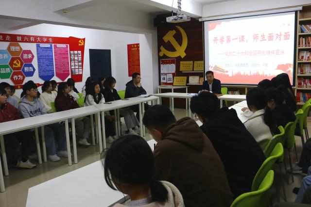 ​(图/雷伟 文/雷伟)为全面学习领会贯彻党的二十大和全国两会精神,深入了解学生的思想动态、学习及生活情况,4月6日,校党委委员、副校长李敏在学生公寓党员工作站为外国语学院师生宣讲党的二十大和全国两会精神。外国语学院学生党支部书记雷伟和学生党员、入党积极分子、学生骨干代表共计40余人聆听了宣讲,宣讲会由院党委副书记谢懿主持。