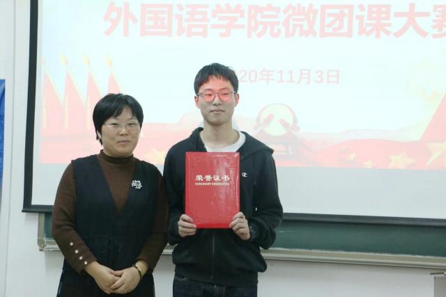 为深入贯彻习近平新时代中国特色社会主义思想特别是习近平总书记关于青年工作的重要思想,学习党的十九大精神,丰富团课内容和形式,加强基层团组织建设,为广大团干部、青年教师和青年学生搭建展示自我、提升能力、交流思想的平台,外国语学院于11月3日下午五点在外院文C105举办2020年外国语学院“微团课”大赛。本次大赛由外国语学院党委委员,学生科长吕筱玉、团委书记李胜男、辅导员袁小清、辅导员李泠毅、18商英1班胡文丽担任评委。